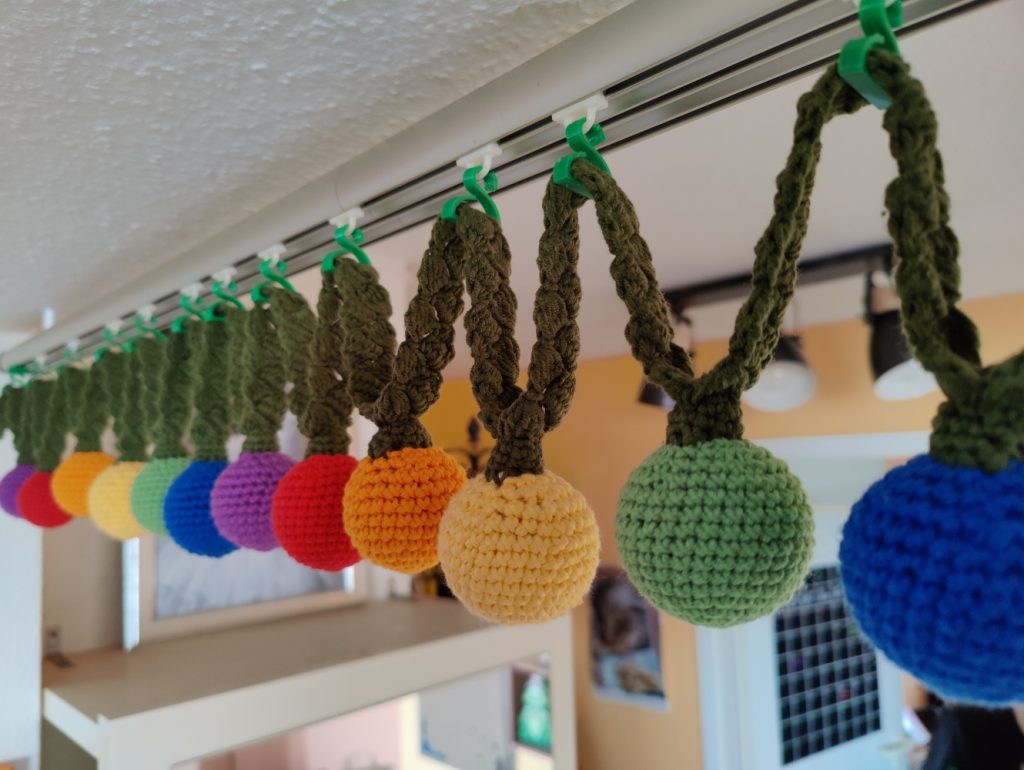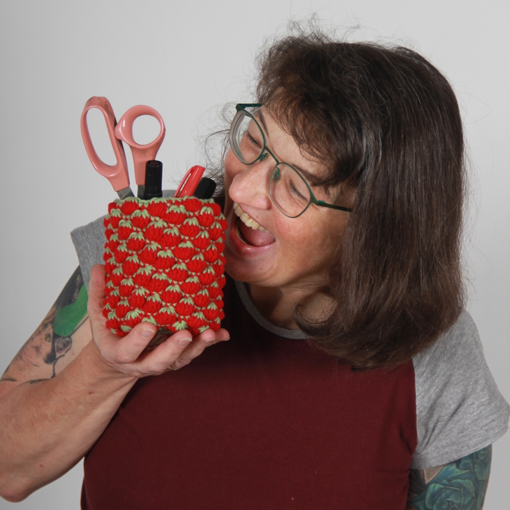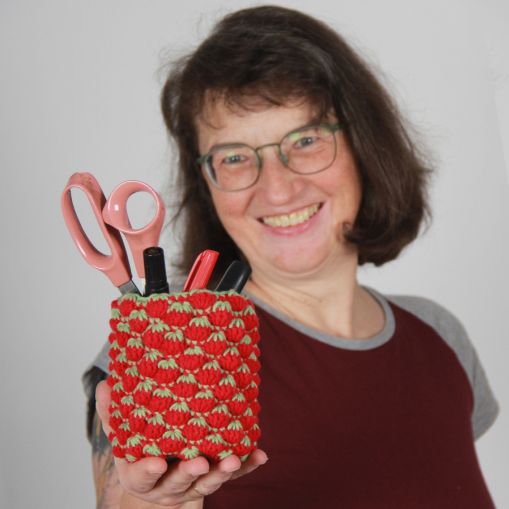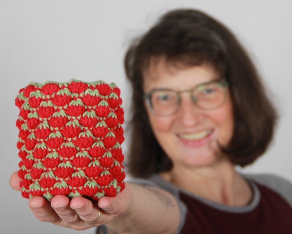 Meine Erdbeeren auf dem Balkon haben sich die Blattläuse schmecken lassen. Macht nichts, dann häkel’ ich mir eben welche.