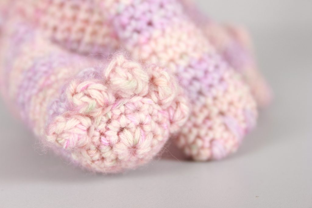 Die verwendete Wolle habe ich in einem schwachen Moment in China bestellt. Das Material nennt sich Milkcotton und ist recht flauschig. Gehäkelt habe ich mit einer 4er-Häkelnadel.