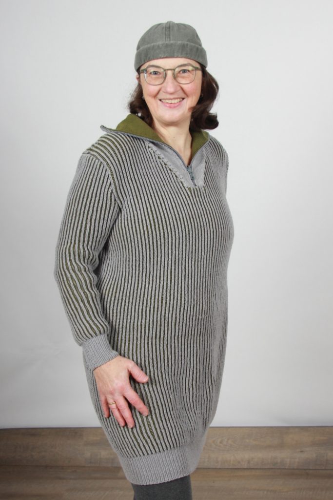 Nach vier Monaten Strickzeit, unendlichen Flüchen und 16 Knäuel Wolle ist endlich mein erstes Strickkleid fertig. Damit es nicht zu leicht ist, musste es (natürlich) ein Troyer–Kleid sein, welches im Patentmuster gestrickt werden wollte. Wie so oft konnte ich mich für keine Farbe entscheiden und so kam hier das zweifarbige Patent zum Einsatz.